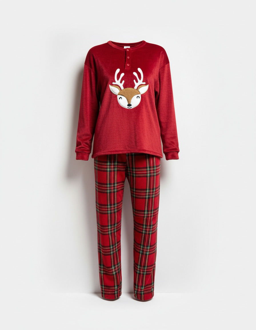Kuschelweicher Hausanzug mit festlichem Weihnachtsdesign – ideal für gemütliche Wintertage und perfekte Wohlfühlstimmung.