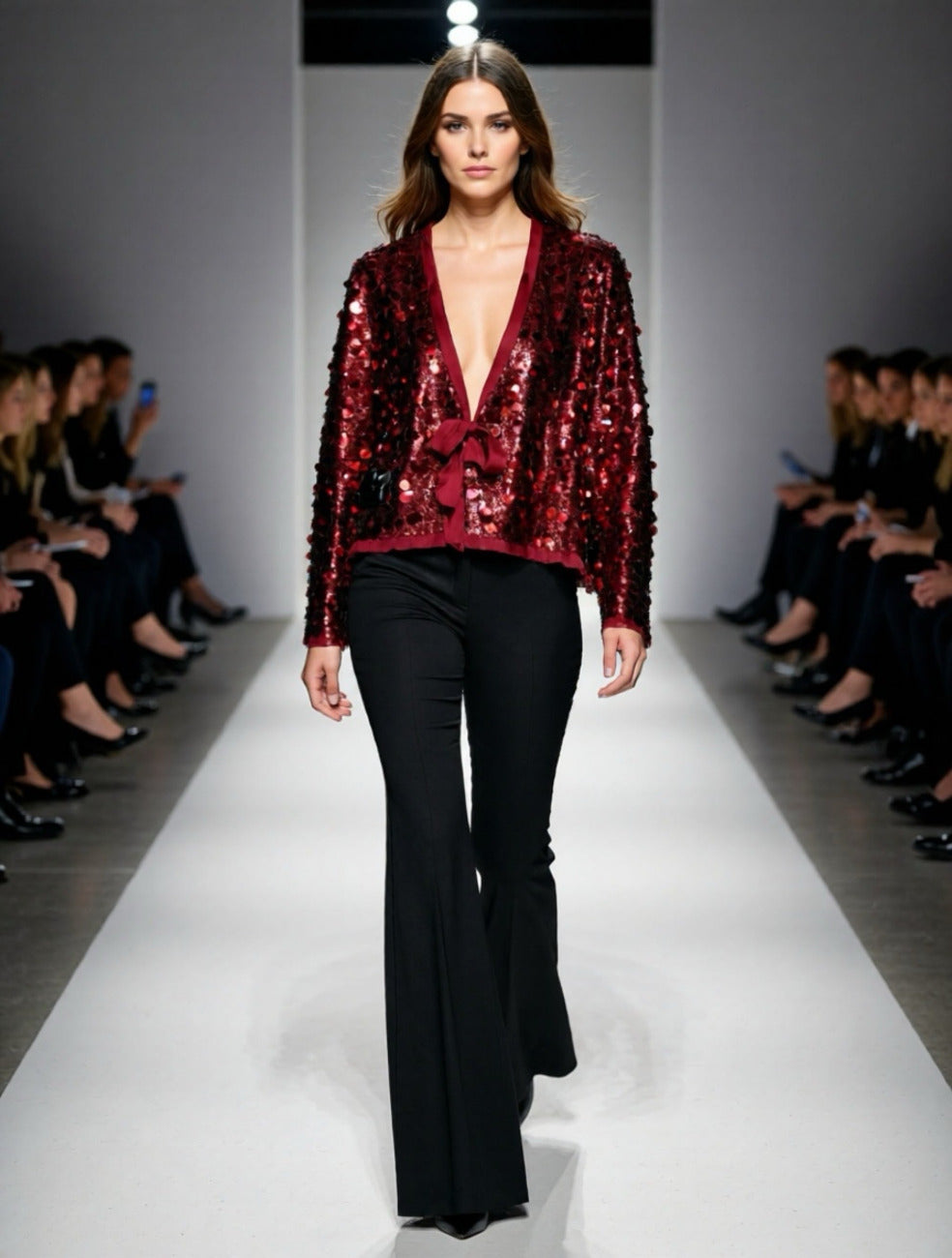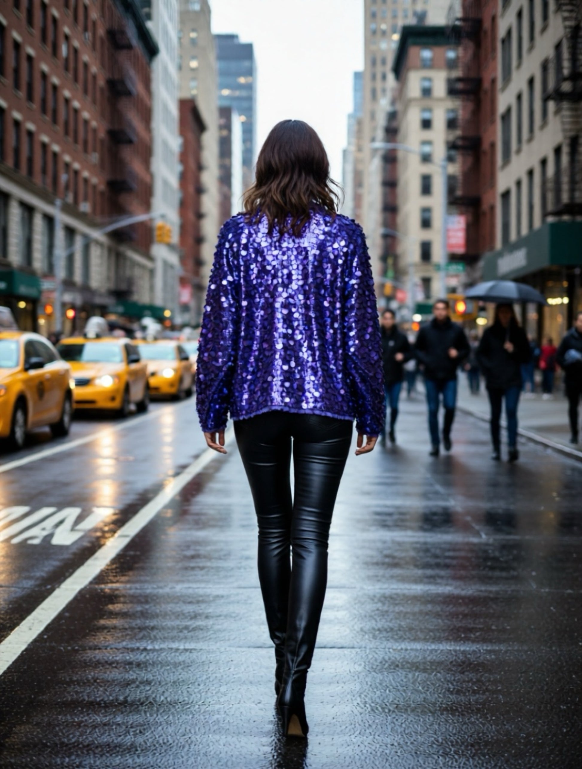 Auffällige Jacke mit funkelndem Glitzereffekt in edlen Violett- oder Bordeaux – perfekt für einen modernen, glamourösen Look.