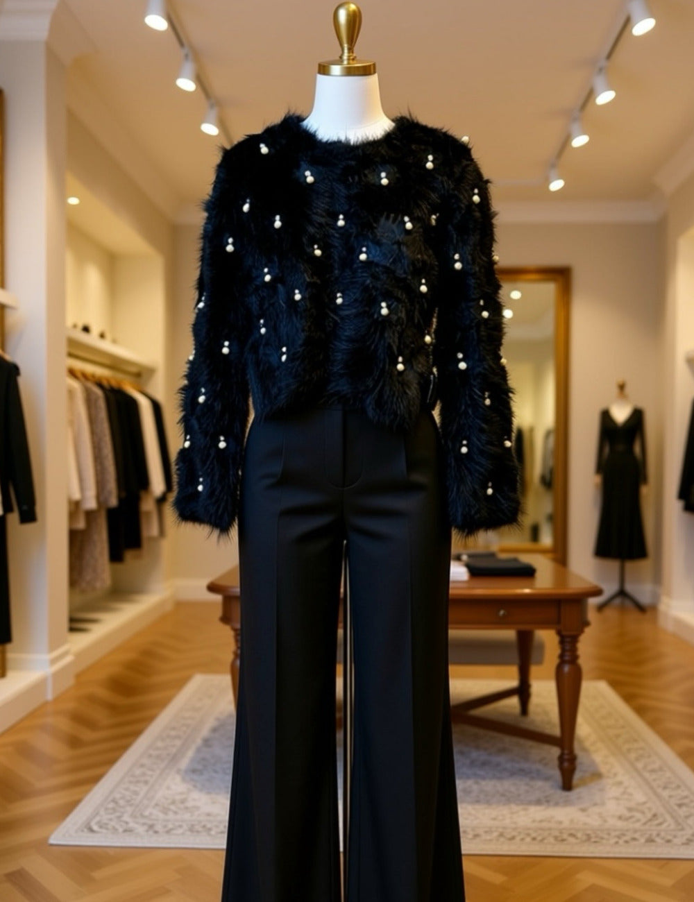 Dieser traumhaft flauschige Strickpullover fühlt sich weich wie ein Wölkchen an. Zarte Perlen und kleine Strasssteine setzen edle Akzente und machen ihn zu einem besonderen Hingucker – perfekt für gemütliche und zugleich elegante Looks